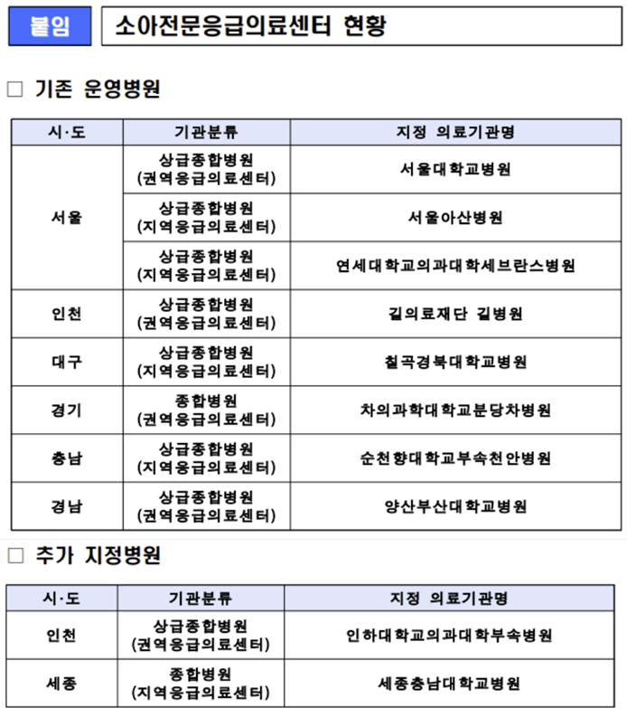 - 소아전문응급의료센터
